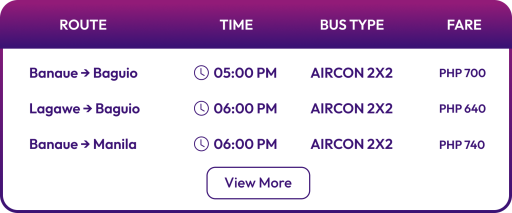 “The bus is air-conditioned spacious and comfortable. Both driver and the conductor are friendly and i highly recommend this bus if you are planning a trip to Banaue.”